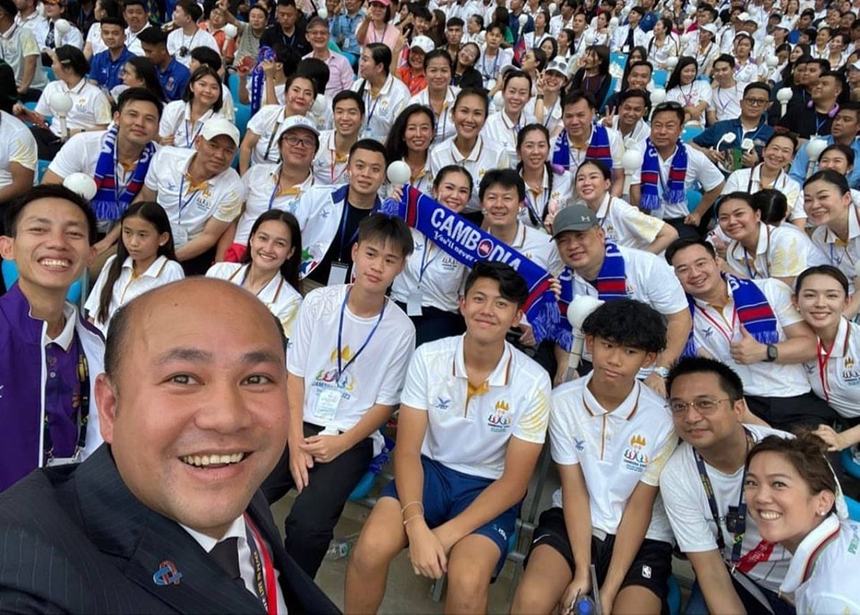 Phnom Penh: H.E. Sok Puthyvuth, Secretary of State of the Ministry of Post and Telecommunications and The President of the Union of Youth Federations of Cambodia- Takeo attended the opening ceremony of the 32nd SEA Games and the 12th ASEAN Para Games hosted by Cambodia in 2023 under the high presidency of Samdech Akka Moha Sena Padei Techo Hun Sen, Prime Minister of the Kingdom of Cambodia and Samdech Kittiprittbandit Bun Rany Hun Sen at the Techo Heritage National Stadium.