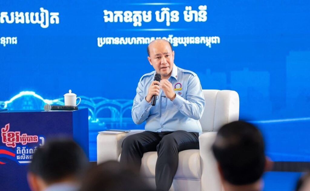 Phnom Penh: H.E. Sok Puthyvuth, Member of the Permanent Committee of the Central Committee of the Union of Youth Federations of Cambodia (UYFC) and President of the UYFC -Takeo, participated in a discussion forum under the theme “Khmer Can Do”, with the invitation and participation of Samdech Preah Moha Ahriyovong Dr. Yon Seng Yiet, and H.E. Hun Many, Deputy Prime Minister, Minister of Public Service, and President of the Union of Youth Federations of Cambodia, with the participation of His Excellency, Luk Chumteav, Vice President, members of the Central Committee of the Union of Youth Federations of Cambodia, ministries, relevant institutions, sponsors from both the state and private sectors, and the public at the Koh Pich Convention and Exhibition Center.